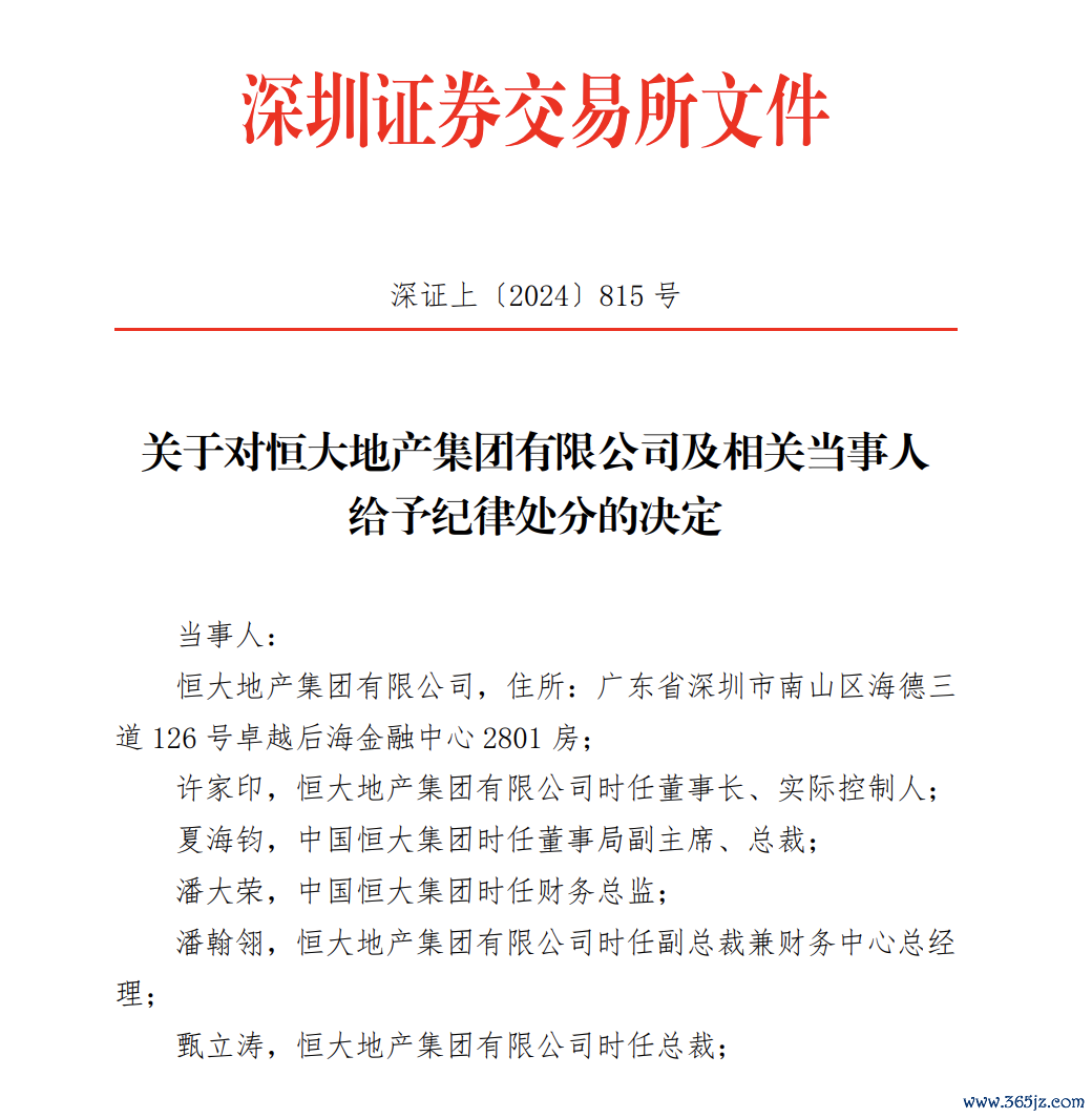 9月30日深夜,深交所发布对恒大地产集团有限公司及许家印等相关当事人的纪律处分决定。