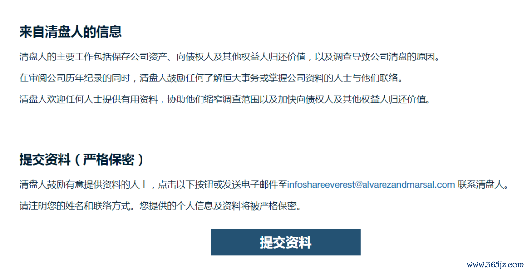 网站显示,清盘人的主要工作包括保存公司资产、向债权人及其他权益人归还价值,以及调查导致公司清盘的原因。