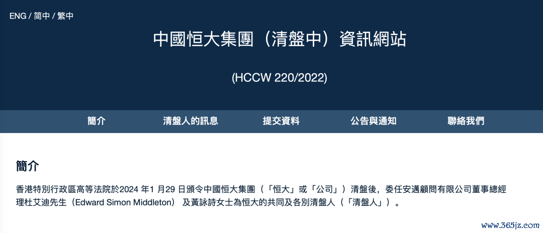 中国恒大清盘人推出新网站: