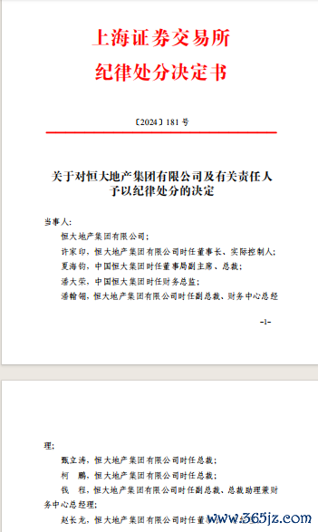 沪深交易所对恒大地产及许家印等予以纪律处分